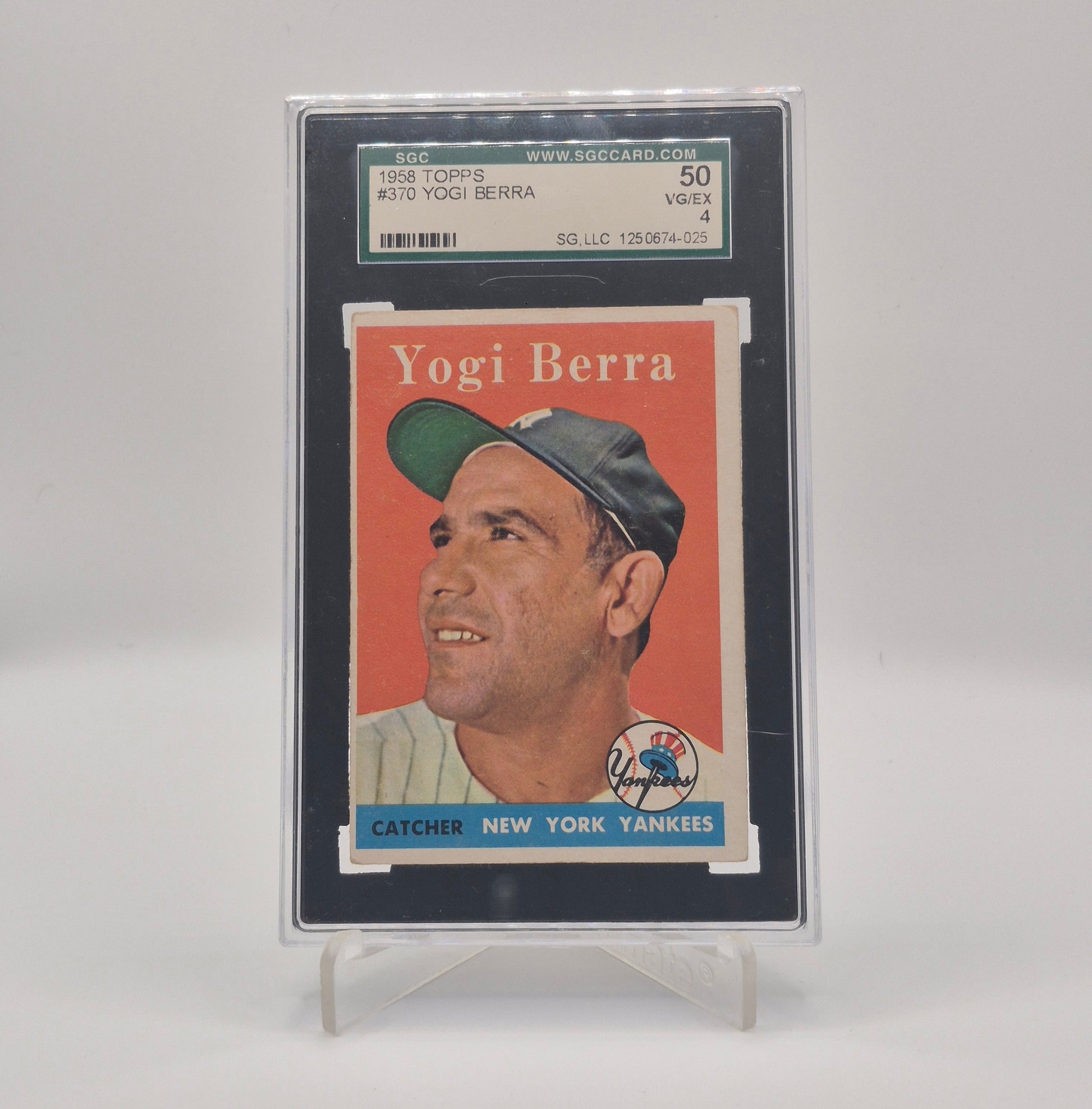 Own a piece of baseball history with this 1958 Topps Yogi Berra card. Graded SGC 4, this vintage card features the legendary New York Yankees Hall of Famer, making it a must-have for classic card collectors and baseball enthusiasts alike.