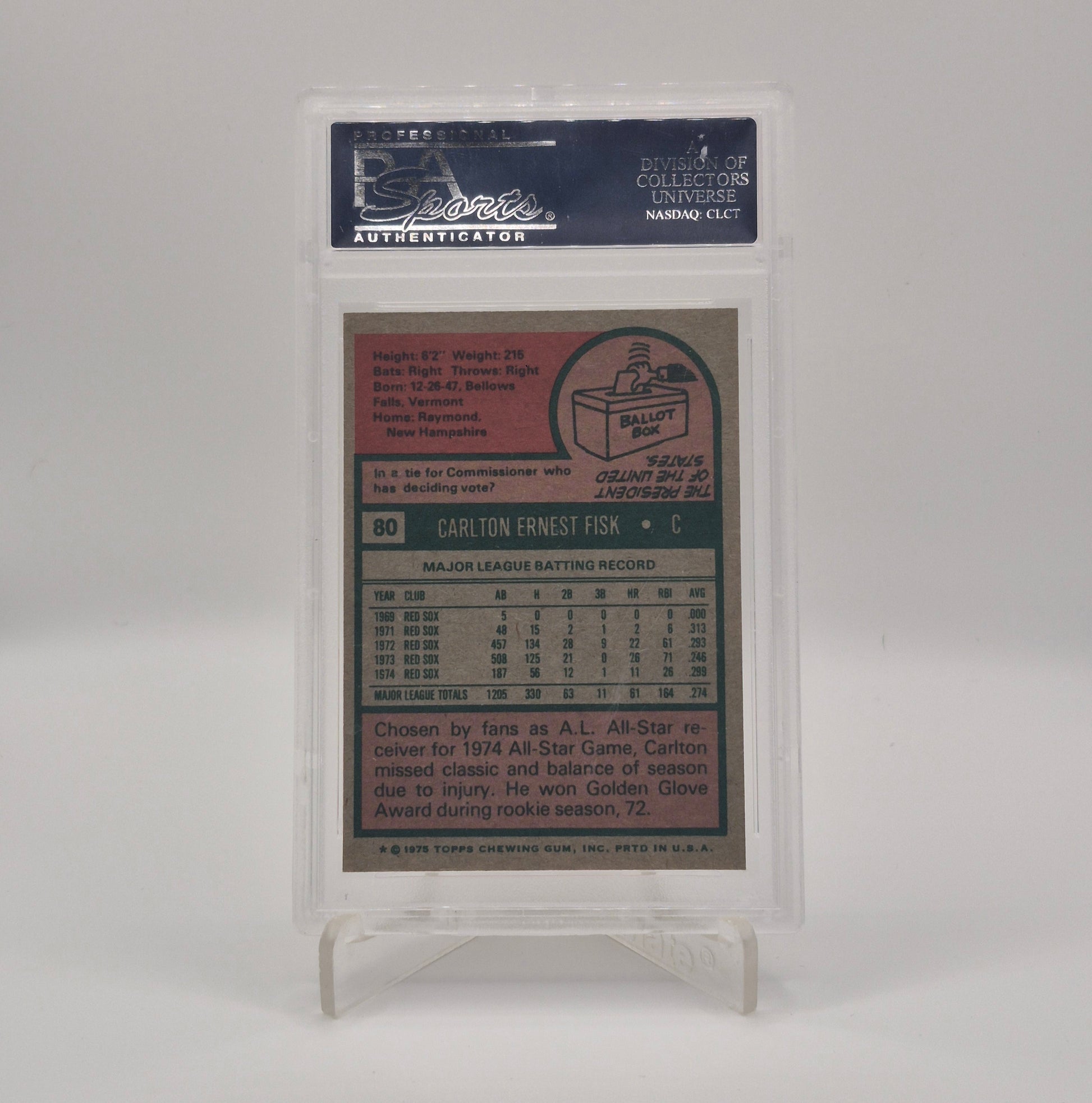A cornerstone for any vintage collection, this 1975 Topps Carlton Fisk PSA 9 combines historical significance with collectible quality, making it a standout addition for fans, Hall of Fame collectors, and investors.