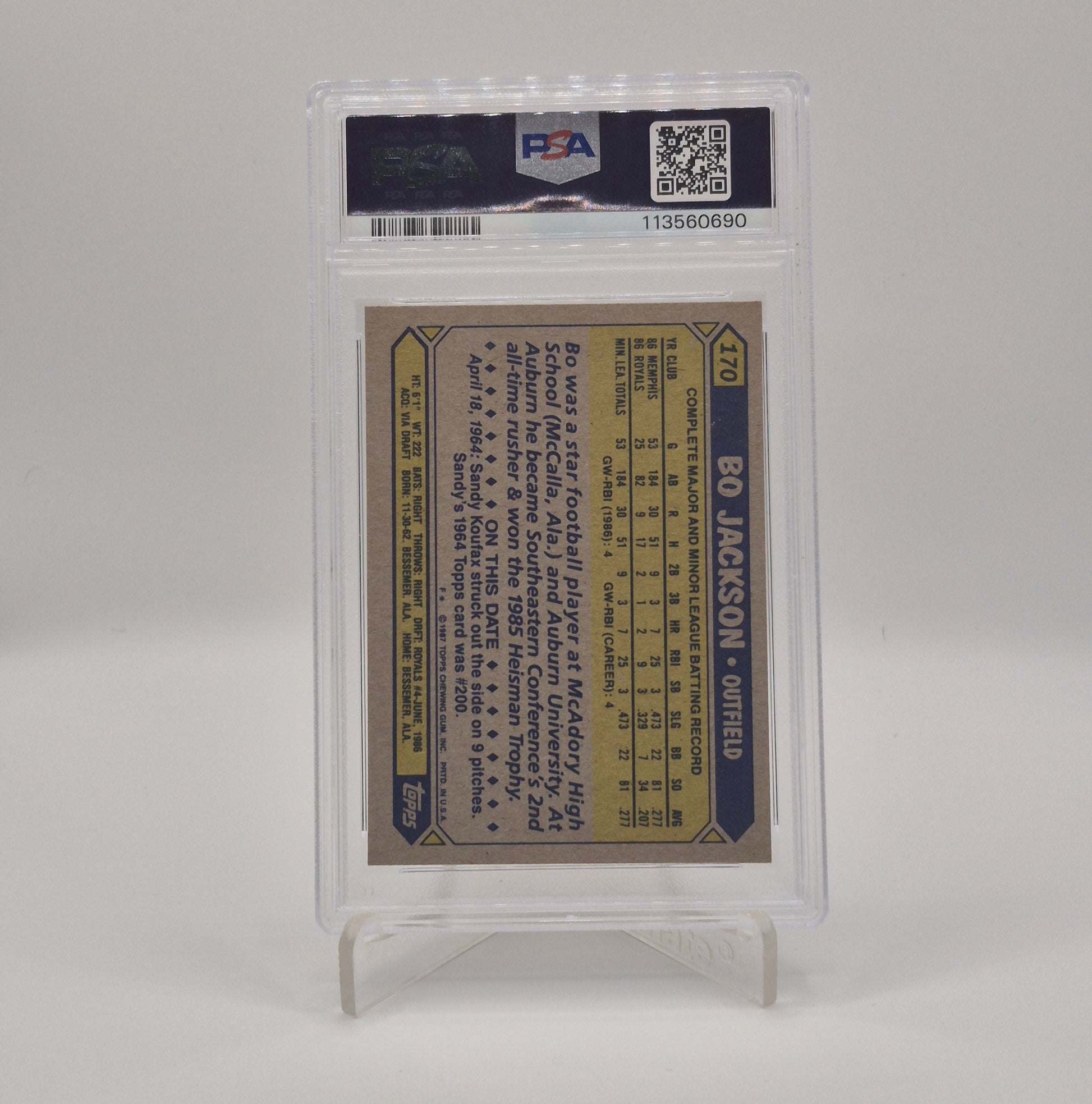 A centerpiece for any vintage collection, this 1987 Topps Bo Jackson Future Stars PSA 8 combines iconic athletic history with collectible value, perfect for baseball, football, and multi-sport memorabilia collectors.
