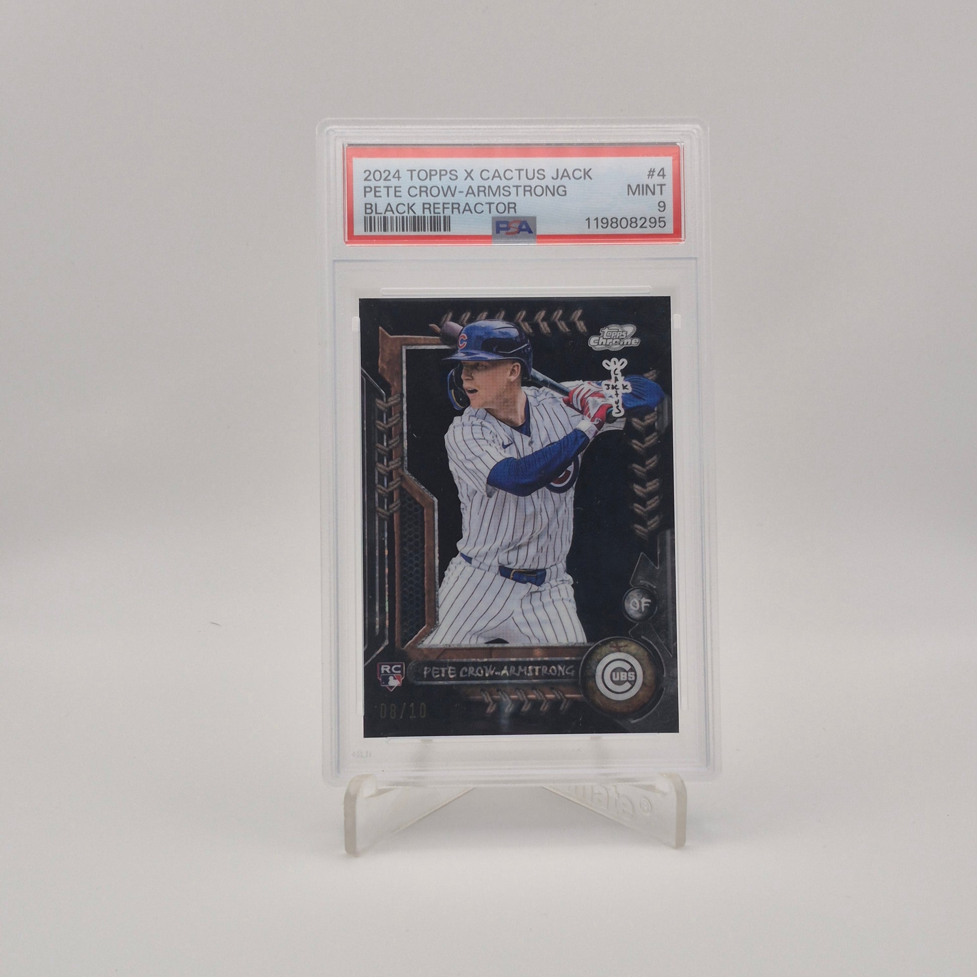 With its exclusive Cactus Jack design and extremely low print run, this 2024 Topps x Cactus Jack Pete Crow-Armstrong Black Refractor /10 PSA 9 is a must-have for collectors chasing the most stylish and limited releases of the year.