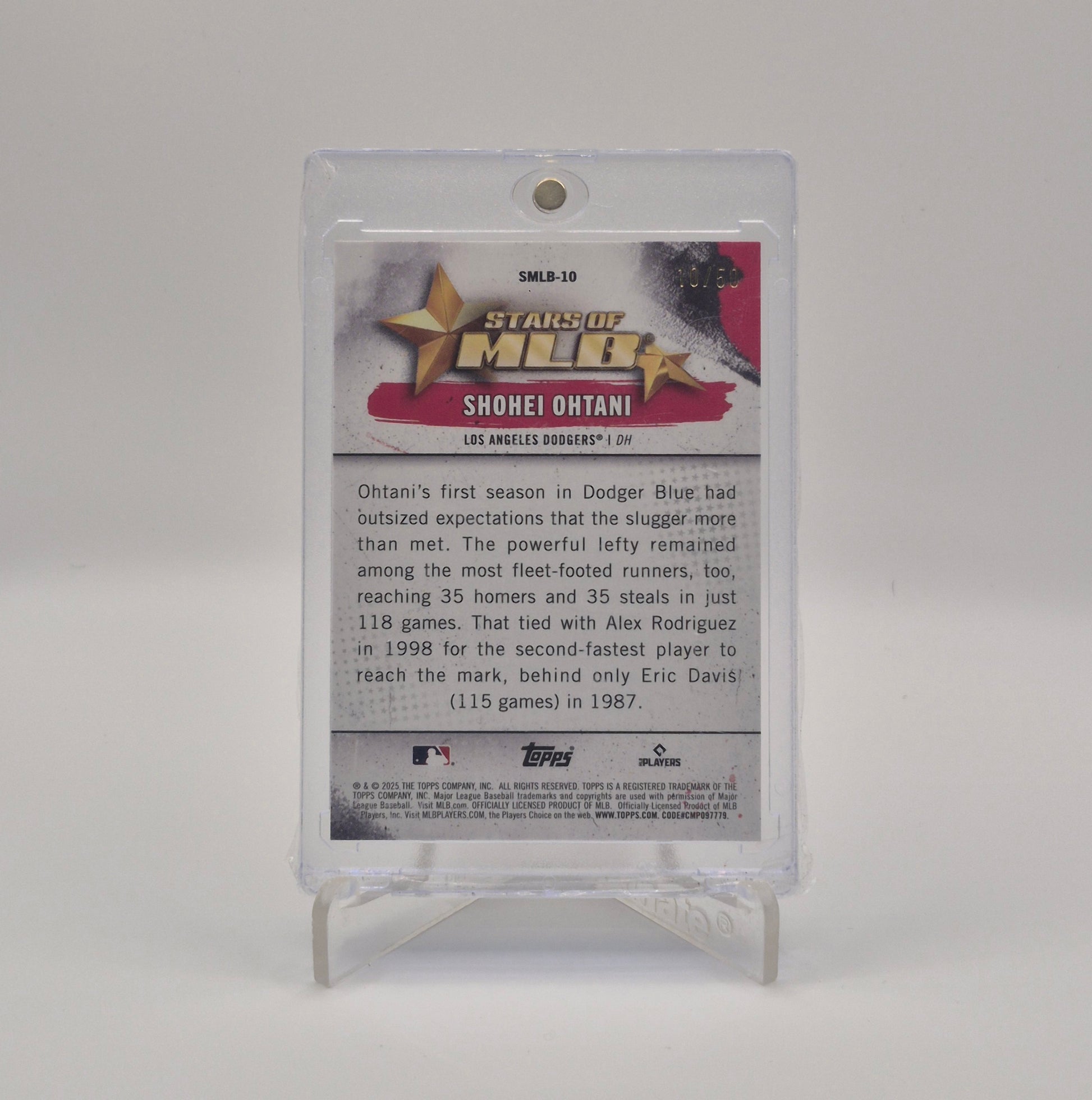 Perfect for Ohtani fans, Dodgers collectors, and modern baseball investors, this 2025 Topps Shohei Ohtani Stars of MLB /50 offers rarity, star power, and long-term value in one stunning card.